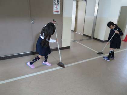 今月の生活目標は「1年間 使った教室 ピカピカに」です。そうじがんばりカードにで毎日ふり返りながら、そうじに取り組んでいます。一人二人で担当している場所も多いですがみんながんばっています!