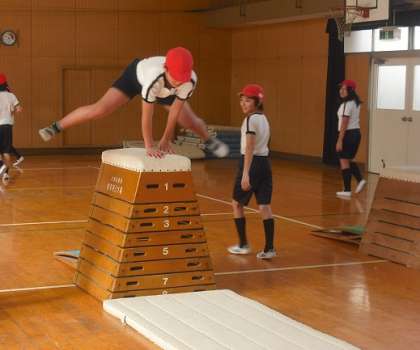6年生の体育の授業の様子です。いろいろな跳び方で、跳び箱に挑戦しています。友だちの成功も素直に喜びあえていて、心も温かくなりました。