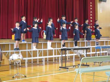 いよいよ明日は入学式です。今日は、明日の準備のため、2年生と6年生が登校しました。2年生の練習は気合十分で(*^_^*)明日の発表が楽しみになりました!