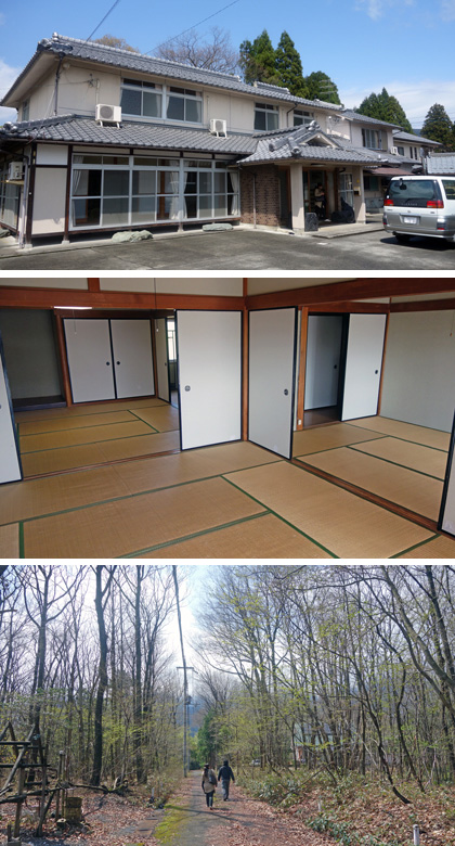 宿舎は、昨年と同じ「民宿 美加久(みかく)」です。宿舎の方の案内で、活動場所を見て回りました。緑豊かなマキノ高原、今はサクラが満開で、観光客がたくさん訪れていました。