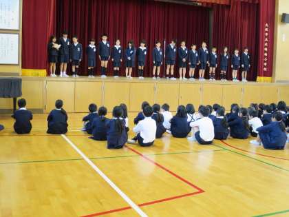 児童朝会で、代表委員(運営委員・委員会委員長・学級代表)の紹介がありました。一人一人どんなことをがんばっていきたいか発表しました。みんなやる気いっぱいです!!