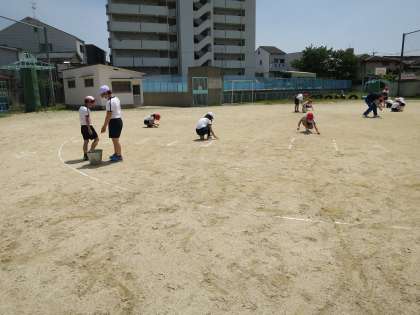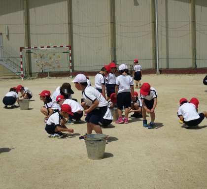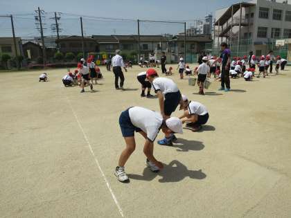 25分休みに運動場の石拾いをしました。みんなでコツコツ拾っては、バケツに集めました!
