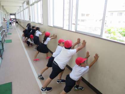 休み時間に「恋」が放送で流れると、音楽に合わせて色んな場所でストレッチをしていました。友達と一緒で楽しそうです!