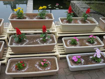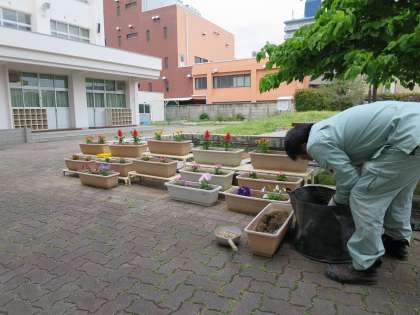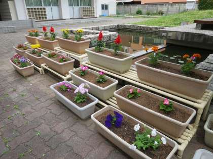 管理作業員さんが、正面玄関入ってすぐの花壇の植え替えをしてくださいました。マリーゴールドにサルビア、ペチュニアなど!今から9月、10月まで咲くそうです。かわいくてきれいな花々です。