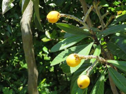 中庭にびわの木があり、実がたくさんなっています。緑色からきれいなオレンジ色に変わってきました。