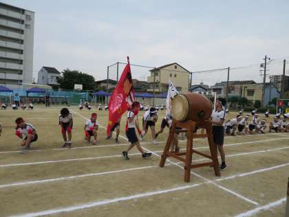 応援合戦では、応援団以外の児童もトラックに座って一緒に応援します!お楽しみに(*^_^*)