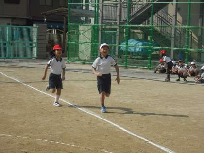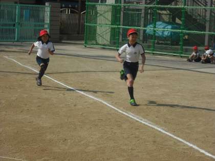 本校では毎学期50m走の記録をとっています。体力が向上し、記録が伸びるように全校でとりくんでいます。記録が伸びるように、今日も一生懸命走りました。