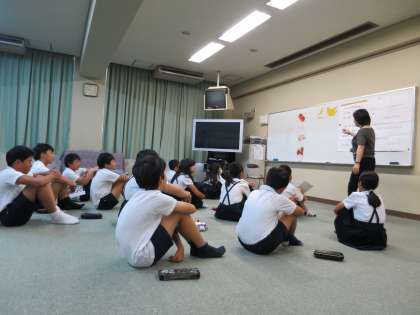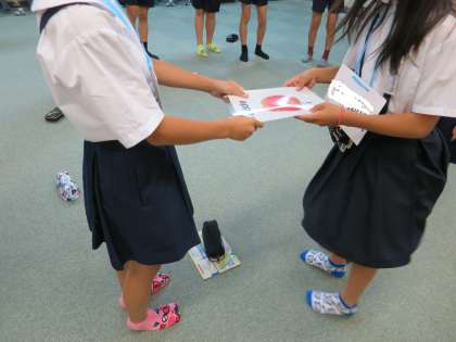 英語の時間に、単数形と複数形を学習しました。学習したことを生かして、一人一人好きなものを発表したり、みんなで輪になってゲームを楽しみました。