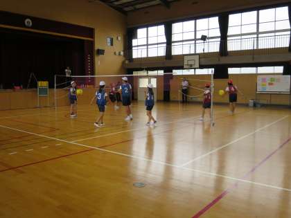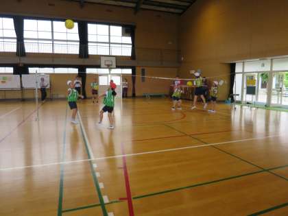 体育の研究授業がありました。単元は「ソフトバレーボール」です。サービス、レシーブ、パスをチームで練習したあとは、自分たちで話し合ったチームごとの課題に取り組みました。練習の成果を生かしてみんなでゲームを楽しむことができました。