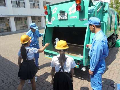 昨日、東部環境事業局からゲストティーチャーに来ていただき、ごみについて学習しました。パッカー車の役割や仕組み、ごみの分別の仕方など体験を交えて教えていただきました。すぐに生活に生かせることがたくさん学習しました。ありがとうございました。