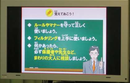 NTTドコモからゲストティーチャーをお迎えし、スマホ・携帯安全教室を行いました。スマホ・携帯を正しく安全に使うこと、危険なことにまきこまれないためには、ルールを守ること、徹底しましょう。