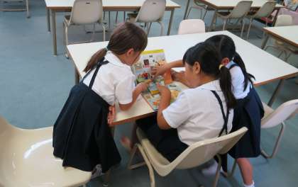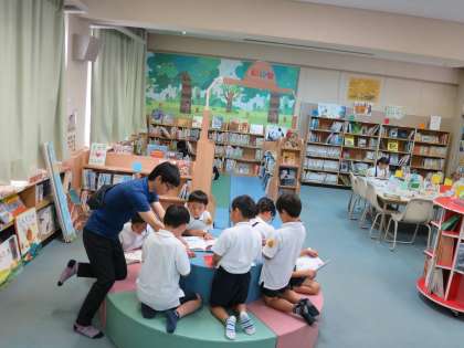 図書室では、友だちと一緒に本を読んだり、読んであげたり・・・思い思いに読書を楽しんでいました。