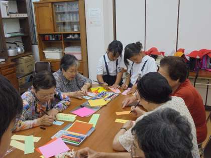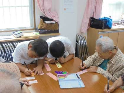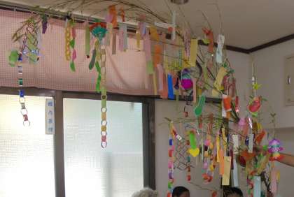憩いの家のおじいちゃん、おばあちゃんと一緒に、たなばたかざりを作って飾り付けをしました。グループに分かれて、わいわいと楽しい時間を過ごしました。どのグループも、にぎやかな素敵な飾り付けができました!ありがとうございました。