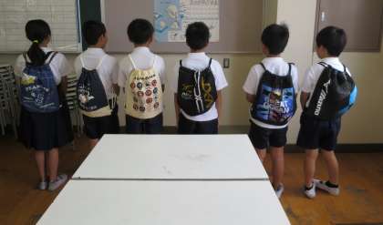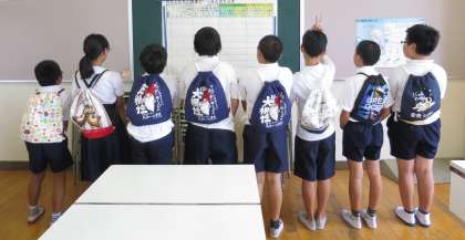 ナップザックが完成したので、記念写真を撮りました。「これで林間に行けます!」と嬉しそうに話してくれました(*^_^*)
