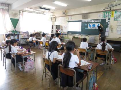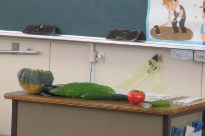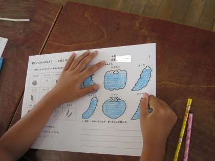 「野菜はかせになろう〜旬のひみつ〜」をめあてに、食育の学習をしました。今が旬の夏野菜には、どのくらい水分が含まれているのかな?その水分のはたらきは?野菜に含まれている水分の割合を色でぬって確かめると、水分の多さがよくわかりました。今日の給食にも、たくさんの夏野菜が入っていましたね!