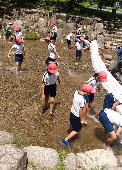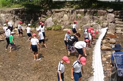 いよいよ活動開始です。まずは、魚つかみ&川遊び。