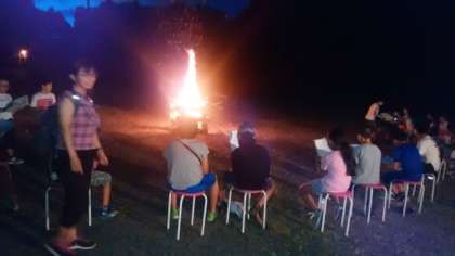 マキノ高原の夜、火と山の神を囲んで。みなさん、盛り上がってますか?