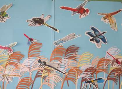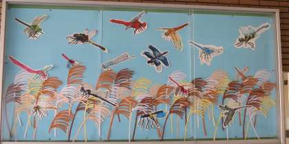 玄関の掲示板には、6年生の作品が掲示されています。まだまだ暑い日が続いていますが、涼しげなトンボとススキが迎えてくれます!