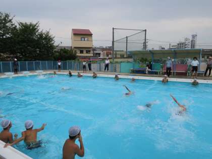 体育の水泳の単元で研究授業がありました。クロールや平泳ぎに加えて今日は背泳ぎの基本も学習しました。ペアで泳ぎ方の確認をし合ったり、自分の課題に向かって取り組んだり、みんな一生懸命がんばっていました。