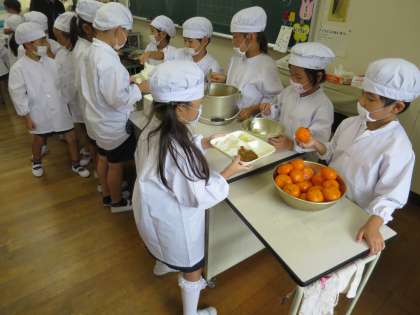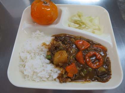 今日の給食は、米粉のビーフカレーライスでした。小麦粉の代わりに米粉でとろみをつけています。給食では、年間を通していろんな種類のカレーライスが登場するので楽しみですね!毎回ラッキーにんじんも楽しみです!