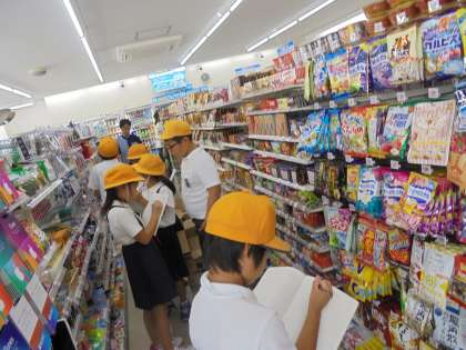 校区のローソンに社会見学に行きました。店員さんのお仕事の様子、お店に置いてある商品のことなど、いろいろと説明もしていただきながら見学させていただきました。ありがとうございました。