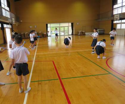 空気鉄砲の玉の位置や個数などの組み合わせを試行錯誤し、自分なりに工夫して玉を飛ばしてみました。みんなで一列になって誰が一番遠くに飛ばすことができるか競争もしました。「ポン!」とはじける音に大興奮の楽しい実験になりましたね。