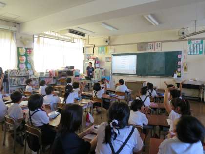 国語「かぞえうた」・・・漢数字の読み方を学習したり書いたりしました。スクリーンに出てくる絵の数え方を考えながら楽しく学習しました。