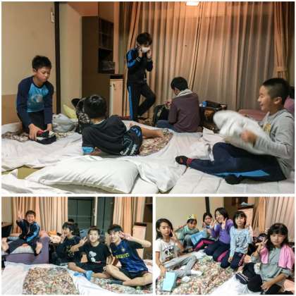 お月見をした後は、お風呂に入って、就寝準備です。ホテルのおみやげコーナーをのぞいてきた子もいたようですよ。