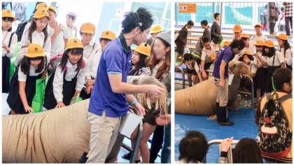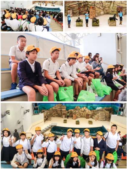 ショーを見るのも楽しみの一つ。上の写真は、「セイウチ パフォーマンス笑(ショー)」ですね。セイウチの肌の感触や、いかに。