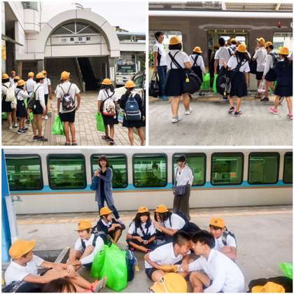 鳥羽駅で、大きな荷物を受け取って、臨時の団体貸切電車に乗ります。いざ大阪へ!