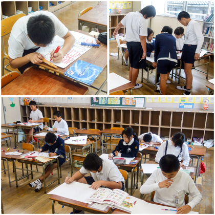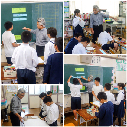 6時間目は、委員会活動。給食委員会の活動室に、校長先生が登場! 掲示物を作る活動でしたが、指示したり、質問に答えたり、必要物を配ったり、大忙しの校長先生。時に笑いを誘う場面もあり、先生も子どもたちも、楽しそうに活動していました。まさに、和気あいあい!