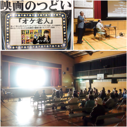 大型プロジェクター&専用スピーカーで、講堂は映画館に早変わり。上映作品は、『オケ老人!』という昨年11月に劇場公開されたコメディ映画です。かなり攻めた?タイトルどおり、笑いがふんだんに盛り込まれたお話でしたが、ほろりとする場面あり、感動する場面ありで、見応えのある作品でした。