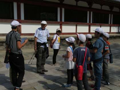 3学年合同で奈良公園に遠足に行きました。奈良公園では、班でオリエンテーリングをしながらチェックポイントにあるクイズに挑戦しました。また、たくさんの観光客の方がいらっしゃたので、班で英語などで話しかけてみました!