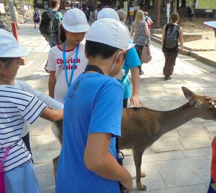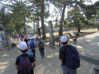 奈良公園、ご存じの通り鹿がたくさんいました。お弁当を食べるのもひと苦労だったようです。何とかガードしてお弁当を守りつつ、お弁当もお菓子もおいしくいただきました。ご準備ありがとうございました。