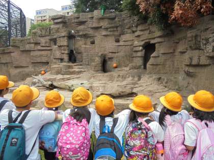 みんなで一緒に、天王寺動物園を歩いてまわりました。動物を見たり、ちょっとさわったりもしました!みんな一緒だから楽しいね。