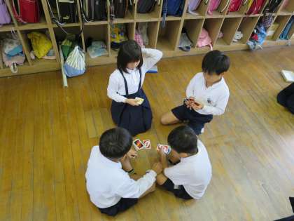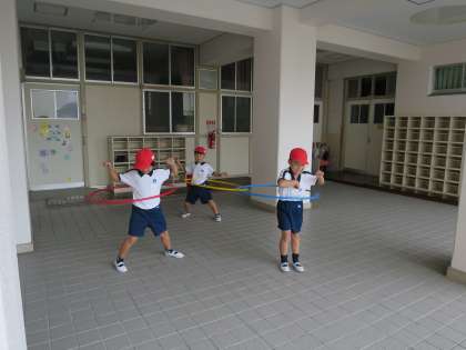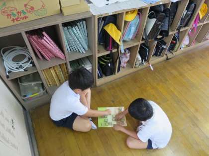 雨が降り続き、外で遊べません。こんな時は、教室で室内ゲームを楽しんだり、フラフープをしたり、図書室に行ったりして休み時間を過ごしています。室内遊びもなかなか楽しいものです(^o^)