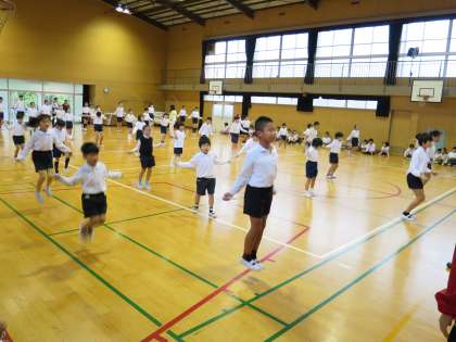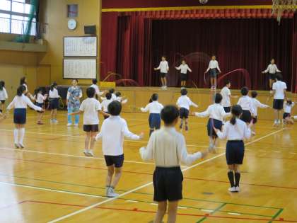 雨が降っていたので、講堂でなわとび集会をしました。たてわり班に並んで跳ぶので上級生のお手本を間近で見ながら跳ぶことができますね!来週は、晴れるかな?