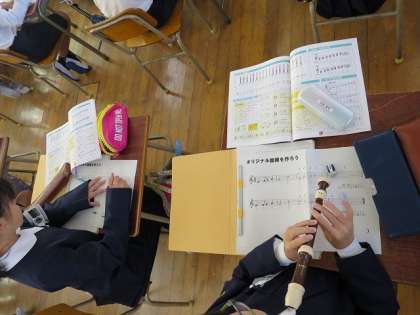 8小節の旋律づくりに挑戦しました。どんな旋律にするか音を選んでリコーダーで前後の流れを確かめて試行錯誤です!いろいろと試しながら時間内に全員が完成させて一人一人が発表することができました。みんないい音色でしたよ♪