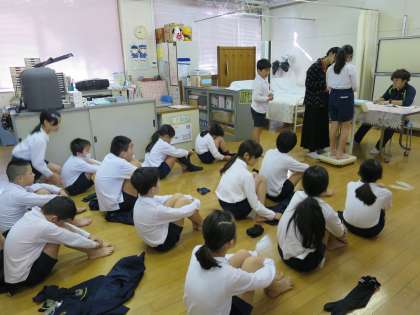 1時間目に体重測定がありました。測定しながら手足のつめも検査しました。測定後は、体内のいろいろな臓器について学習しました。体の中の臓器に興味をもち、そのはたらきをたくさん知ることができました。