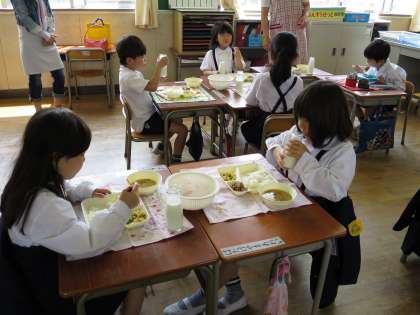 写真は、1年生「給食参観」