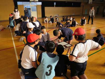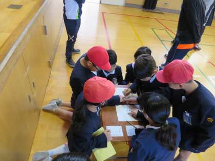 たてわり班でお絵かきリレーをしました。低学年は「お手本通りの絵」高学年は「校長先生の似顔絵」をリレー形式で仕上げます!朝からわいわい楽しい集会になりました。結果発表は、月曜日です。わくわく(*^_^*)