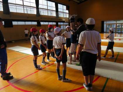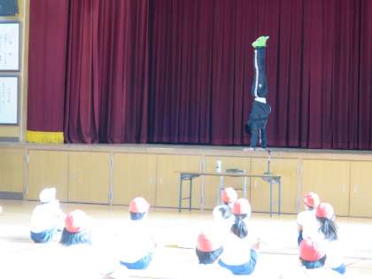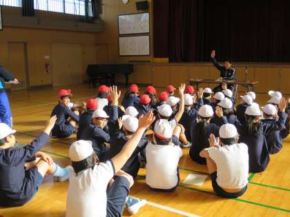 シドニーオリンピック体操男子団体で4位入賞した講師の先生に来ていただき、夢をもつことの素晴らしさを伝える講話をしていただいたり実技指導をしていただきました。