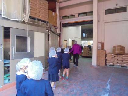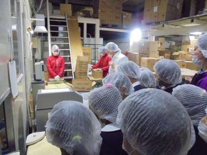地域の食品工場に社会見学に行きました。働く方々の様子や、食品ができる様子、袋詰めされる様子などを近くで見学させていただきました。事前学習で調べた衛生面のことなど、実際に確かめることもできました。見学させていただきありがとうございました。