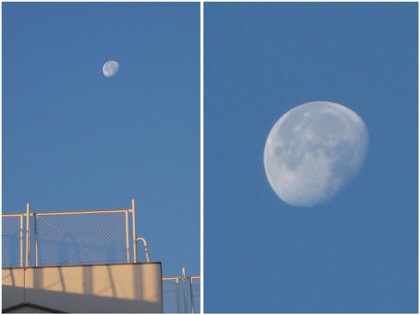 上の写真は、7日(木)の朝7:20頃撮影したものです。まんまるお月様ではありませんが、大きくきれいに見えていました。