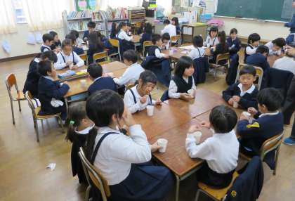 1・2年生みんな一緒に、大学いもをいただきました。おいしくておいしくて、にっこにこでした\(^o^)/