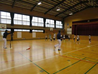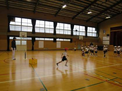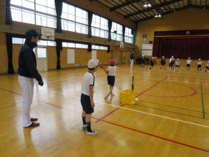 オリックスバッファローズの方にゲストティーチャーに来ていただいて、Tボールを楽しみました。特別ルールで体験したので、得点も入る入る!楽しい体験をありがとうございました。