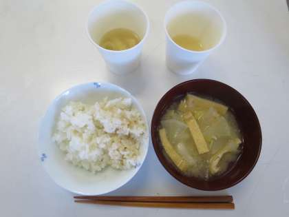 お鍋でご飯を炊いて、みそ汁も作りました。みそ汁は、かつおとこんぶで出汁をとったものをメインに、煮干しだけの出汁のみそ汁、出汁はないみそ汁の3種類を飲み比べました!おいしくて大満足でした。家でも作ってみよう!