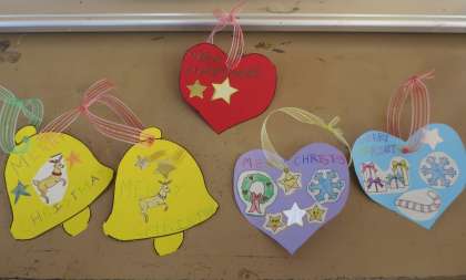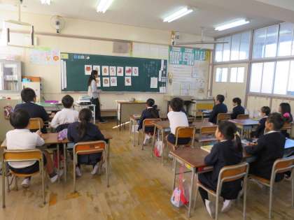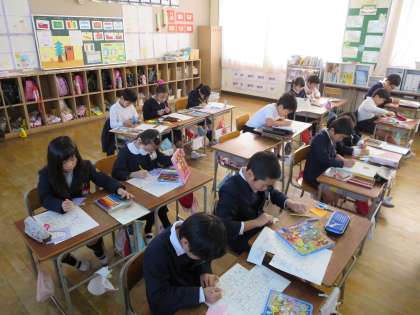 今日の英語の時間は、クリスマスツリーのオーナメントを作りました。オーナメントに貼る絵を選んで色をぬって、切って貼って、英語を書いて・・・オリジナルのオーナメントが完成し嬉しそうでした!