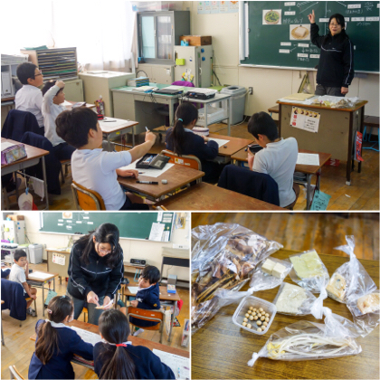 5時間目は、栄養教諭のK先生による食育の授業。大豆と大豆の加工食品について学習しました。