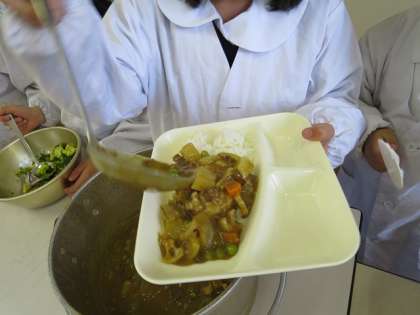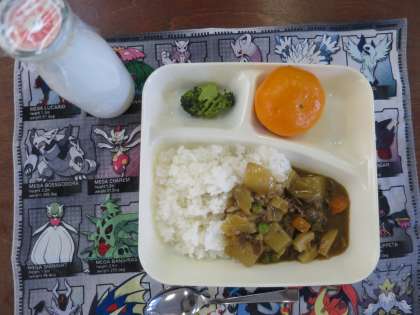 今日の給食は、冬野菜のだいこんやれんこん、しょうがやにんにくもたっぷり入ったカレーライスでした。ビタミンCがたっぷりのブロッコリーやみかんも添えられて、寒い時期に嬉しい献立でした。ごちそうさまでした。